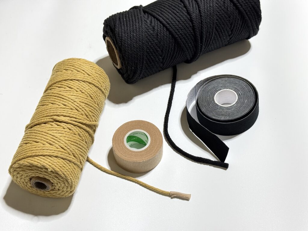 棉紐や毛糸などをワラーチのサンダル紐に使う時のほつれ止めは、テーピングテープがお勧め