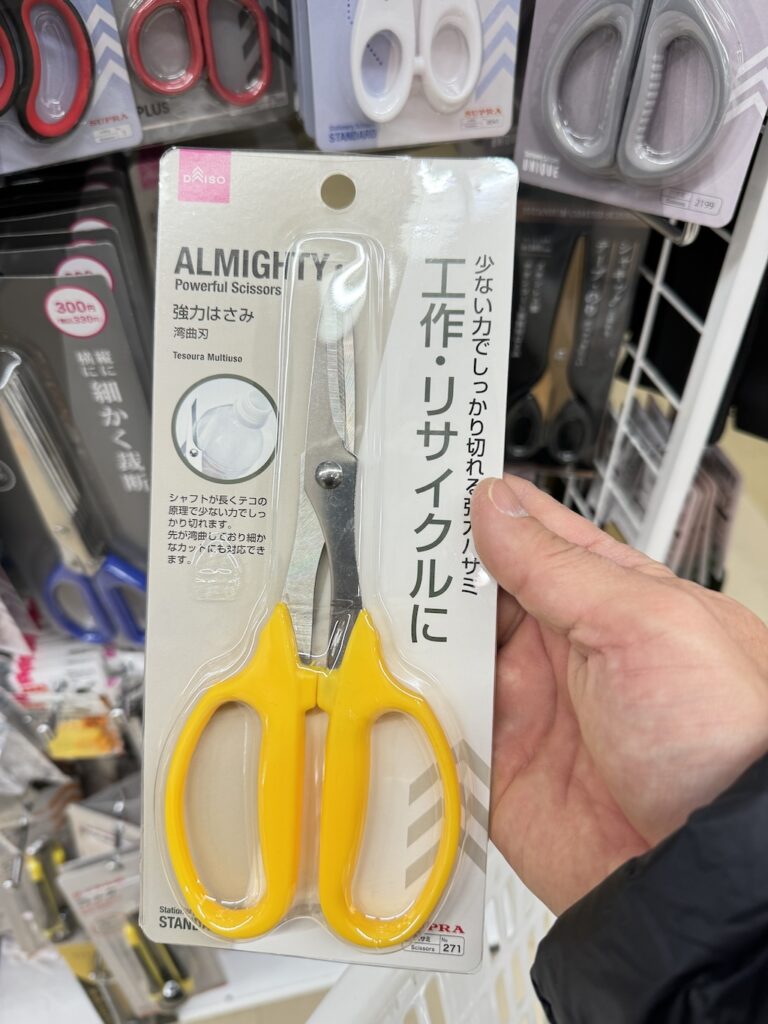 例えば、100円ショップのダイソーさんの300円の強力ハサミ