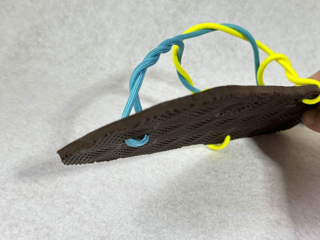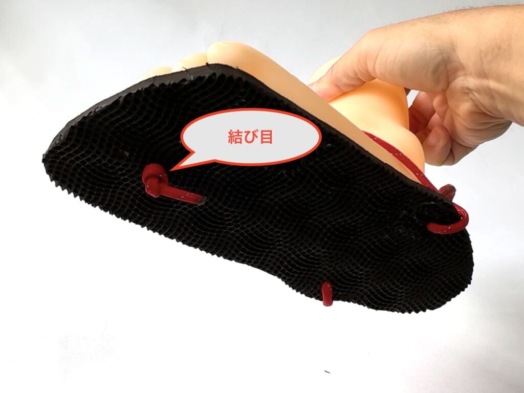 3本の紐でソールを吊り上げられれば、他はどんな紐の結び方にしようと大丈夫です。
