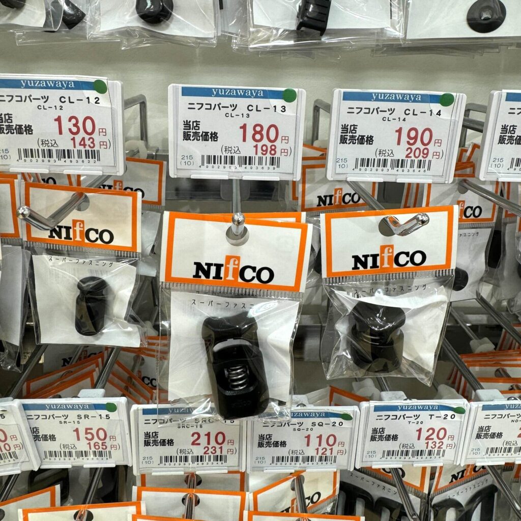 コードストッパーは、紐と同じく、東急ハンズやユザワヤ、各種アウトドア用品店などで販売されています。