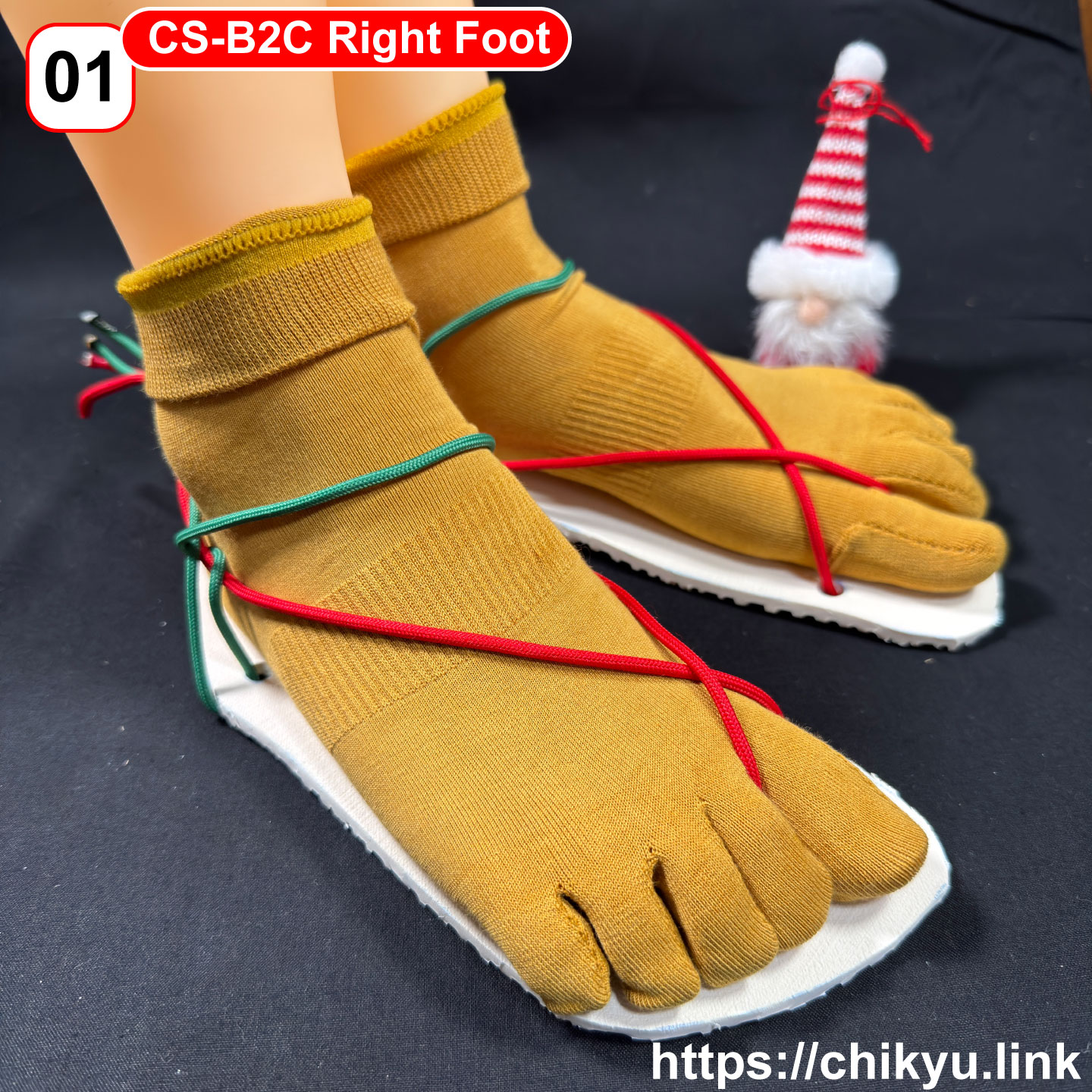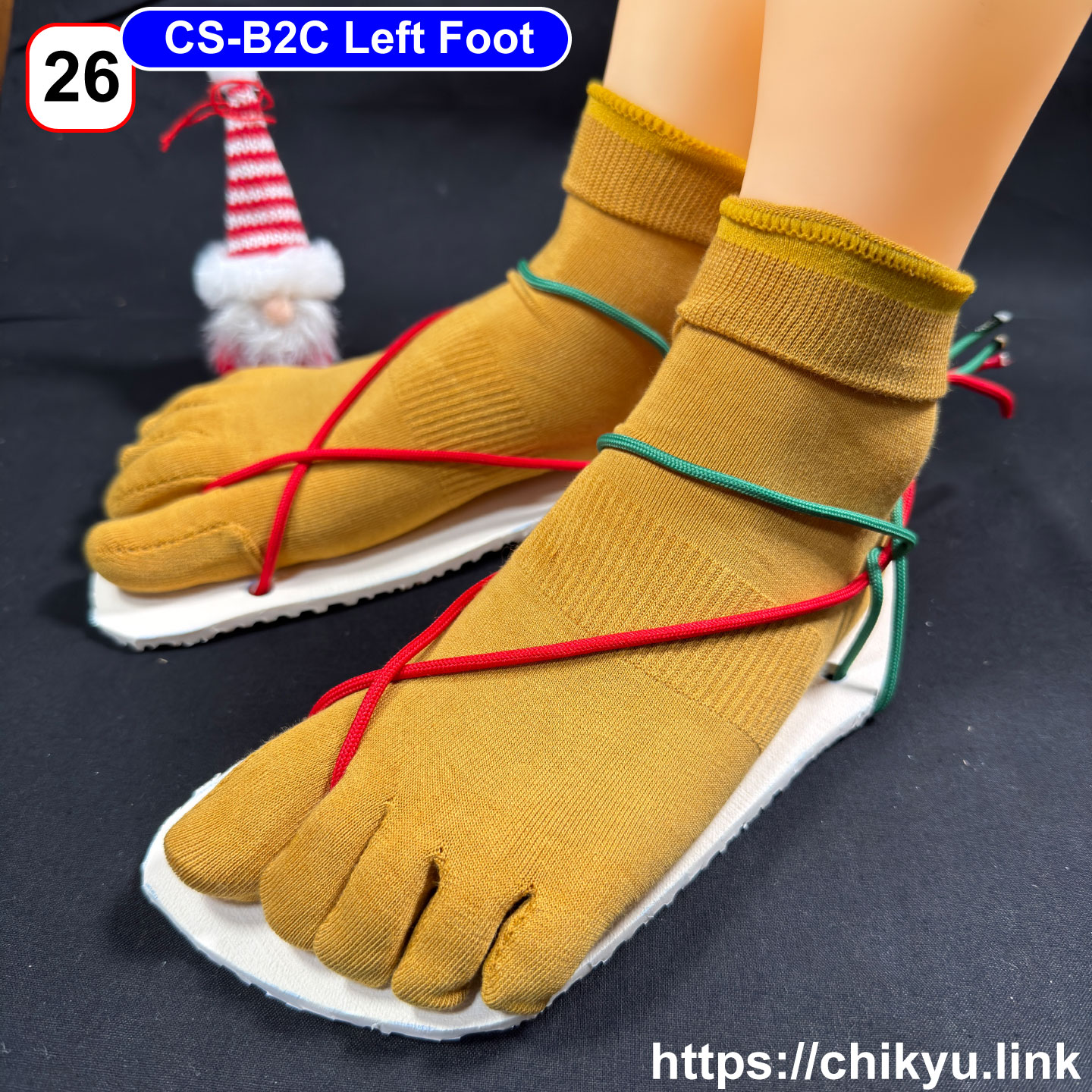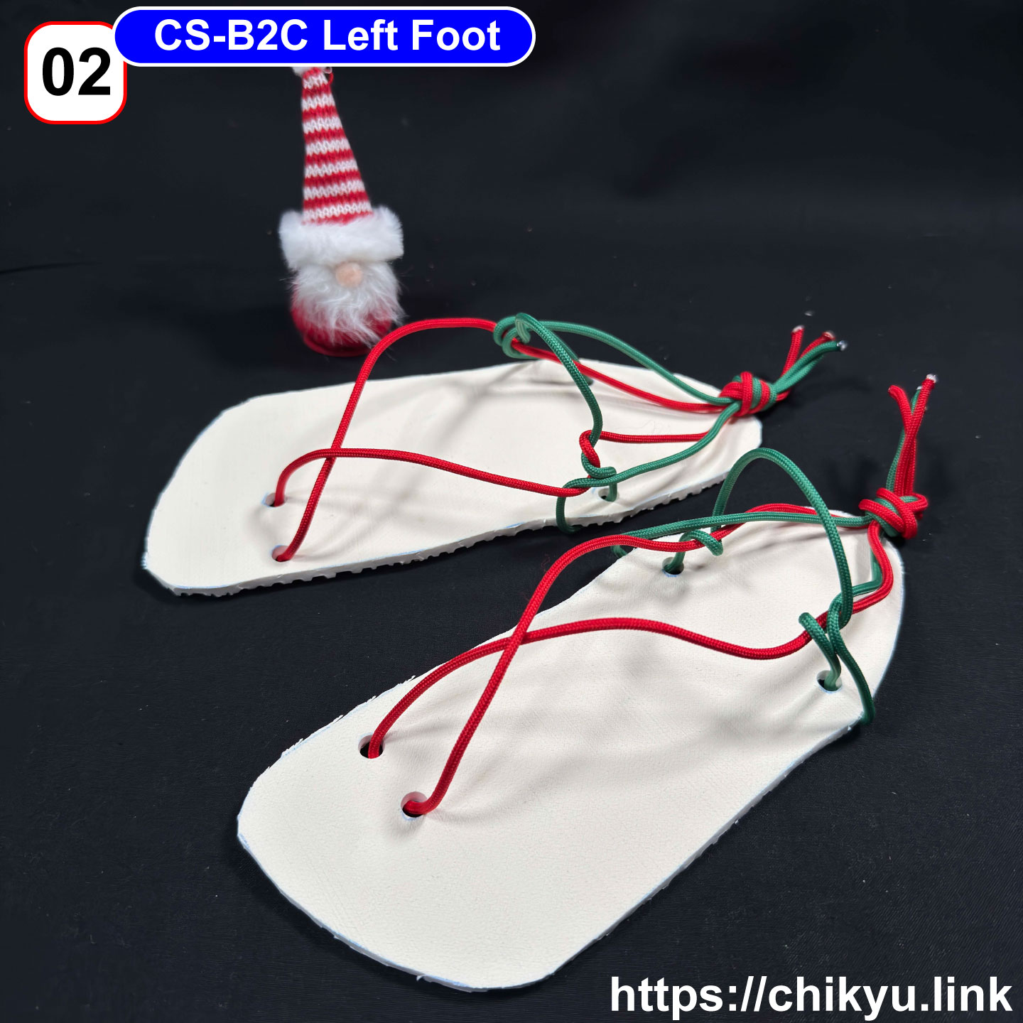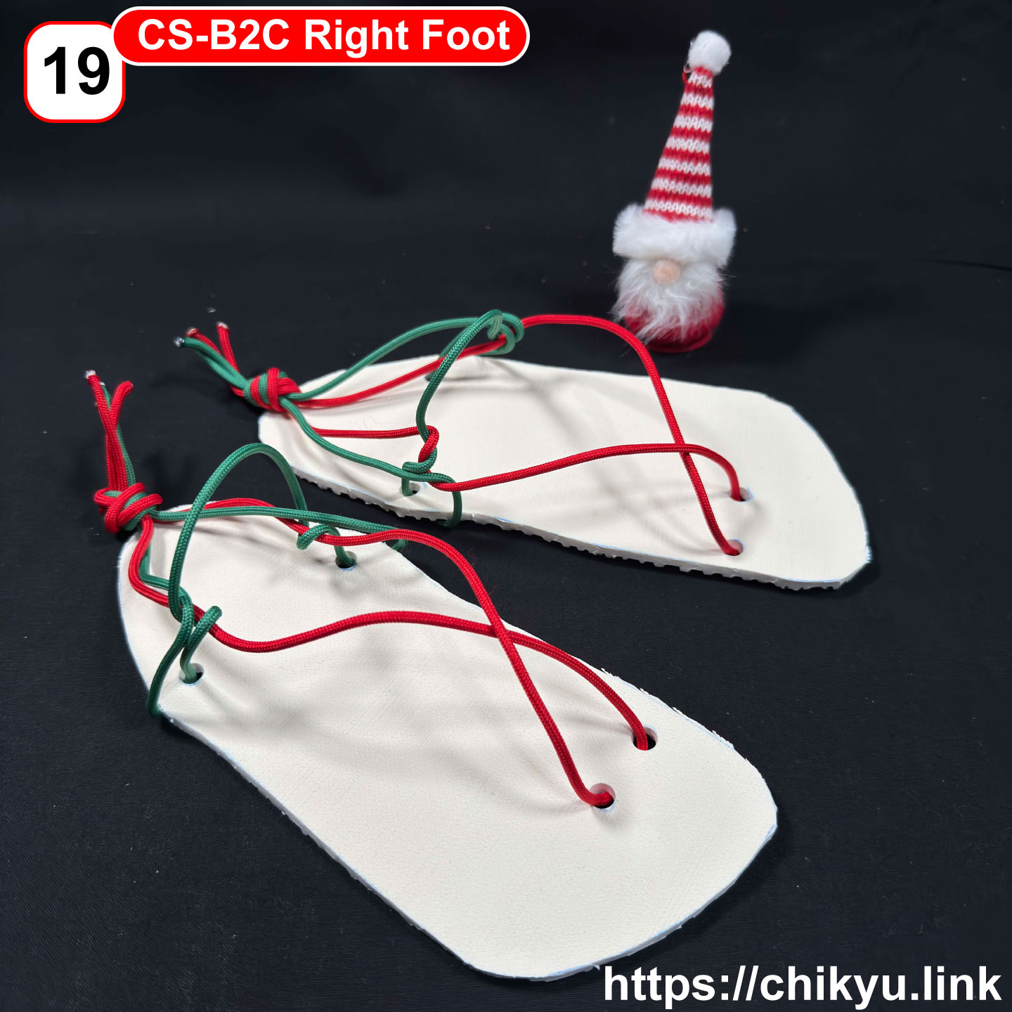 ここで紹介する「ちきゅうサンダルTypeB2C(クリスマスカラーバージョン2024)」は、紐2本とソール(サンダル底)の3色の組み合わせ(靴下も入れれば4色)で、色々なカラーバリエーションを楽しめるワラーチです。