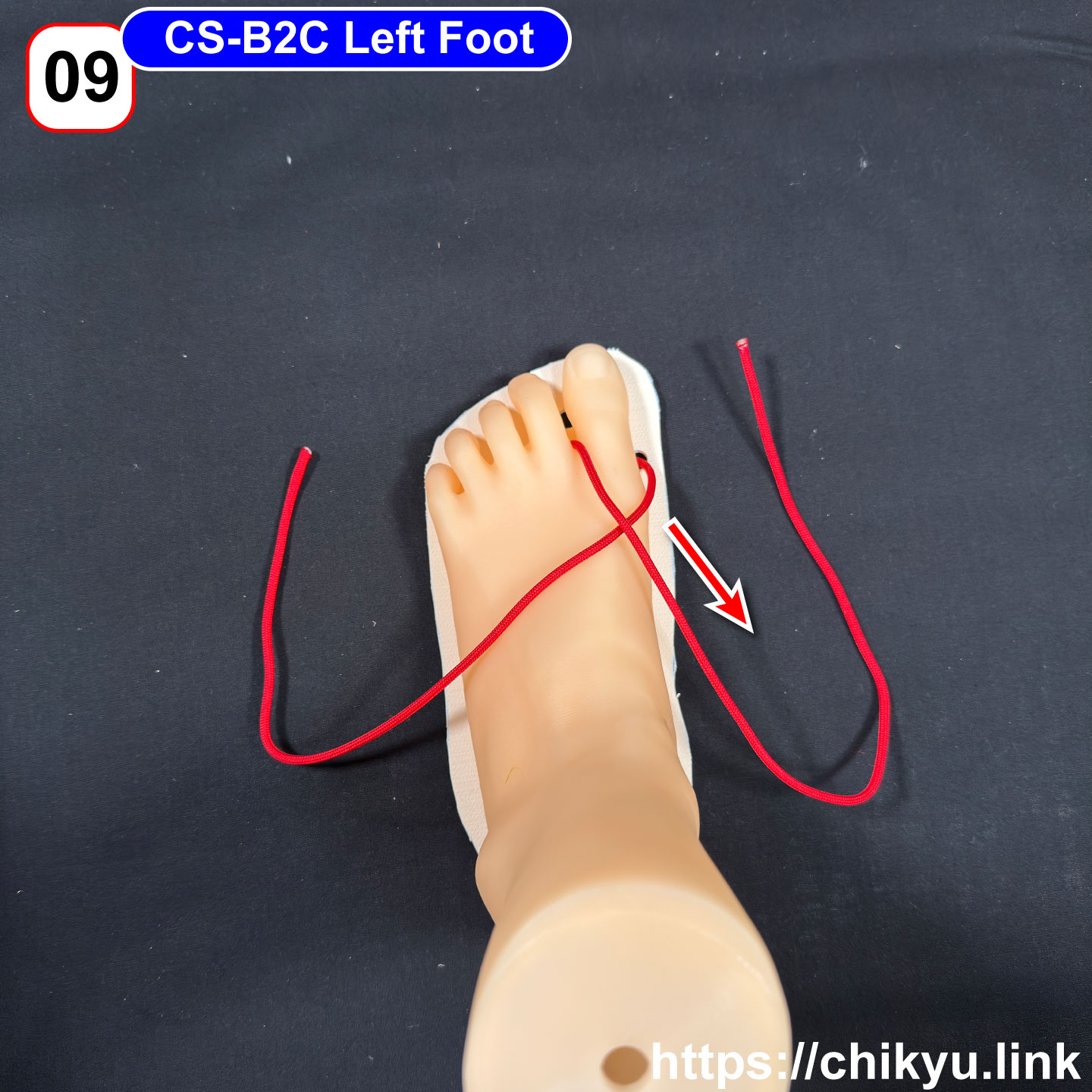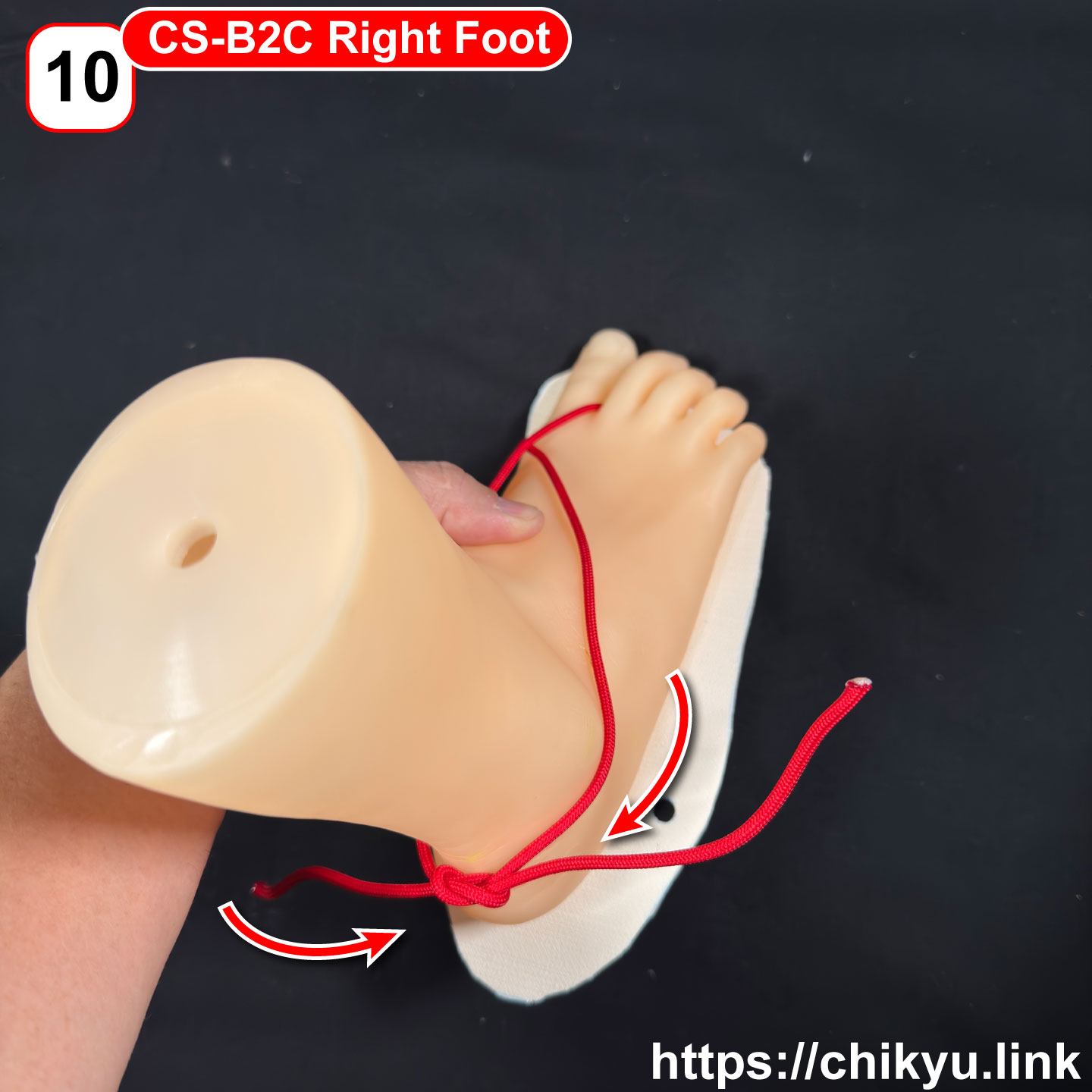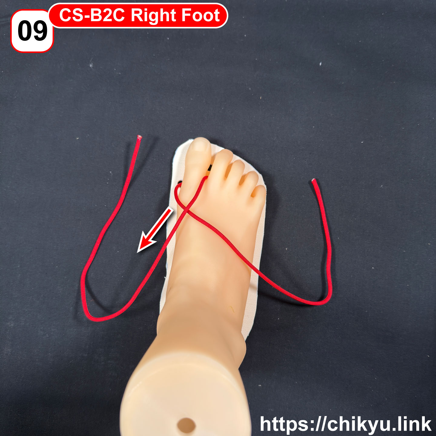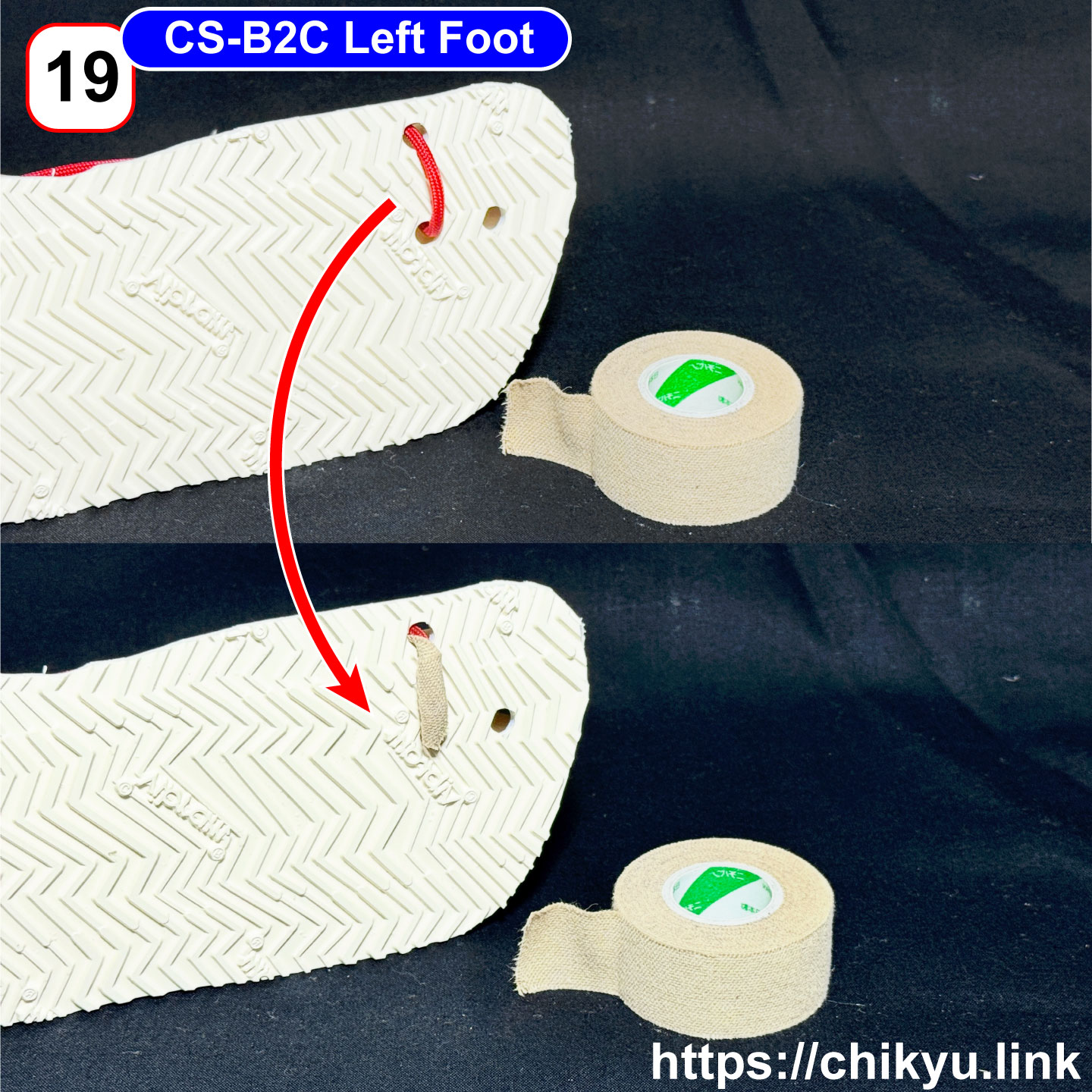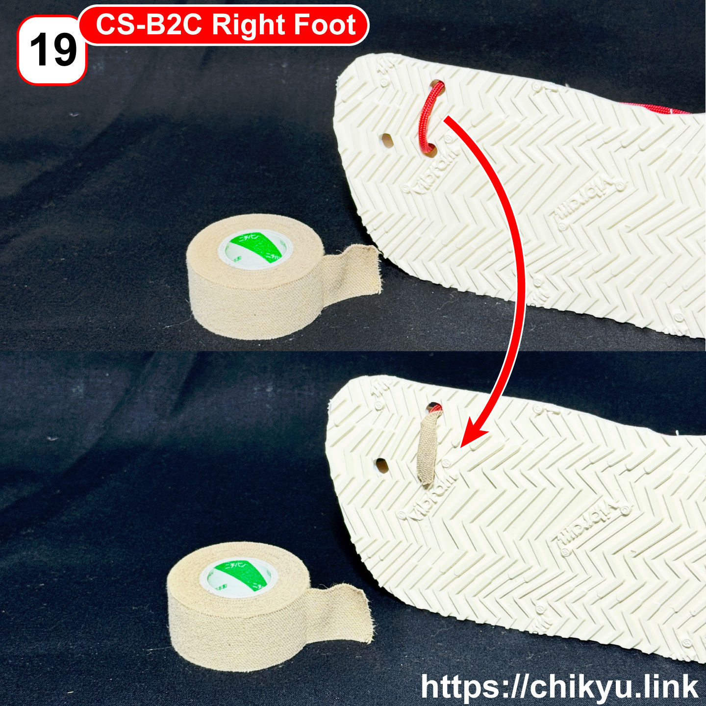 右足19 ソール(サンダル底)裏の紐を、テーピングテープで巻いて保護する