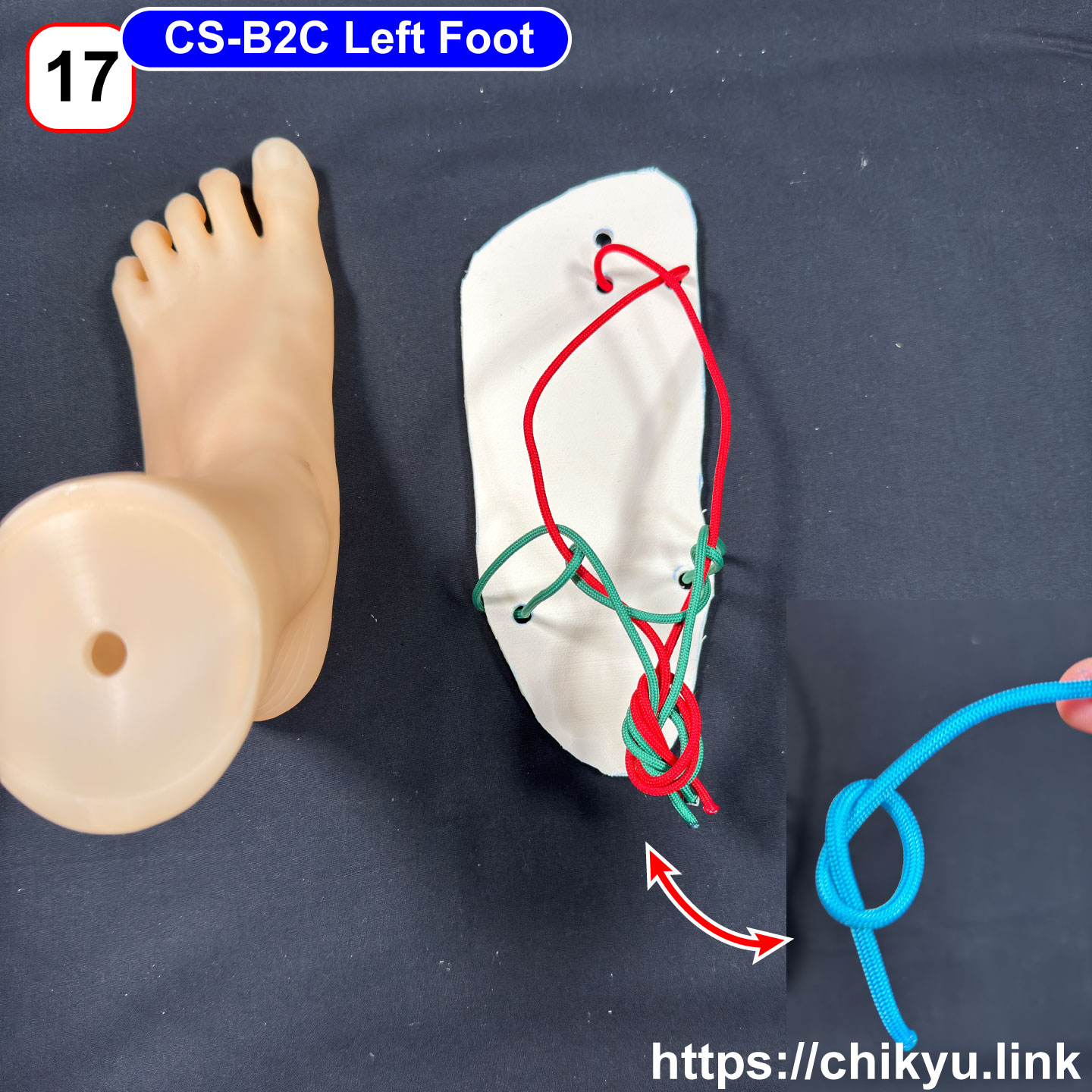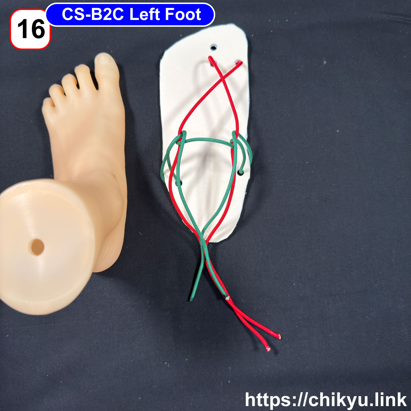 また、紐の結び方を、常に足に対して左右対称に設計することで、作りやすくかつ、その後も作り方を憶えていやすくしています。ぜひ、あなたがあなた自身のオリジナルワラーチを作るベースにしてもらえたらと思います。