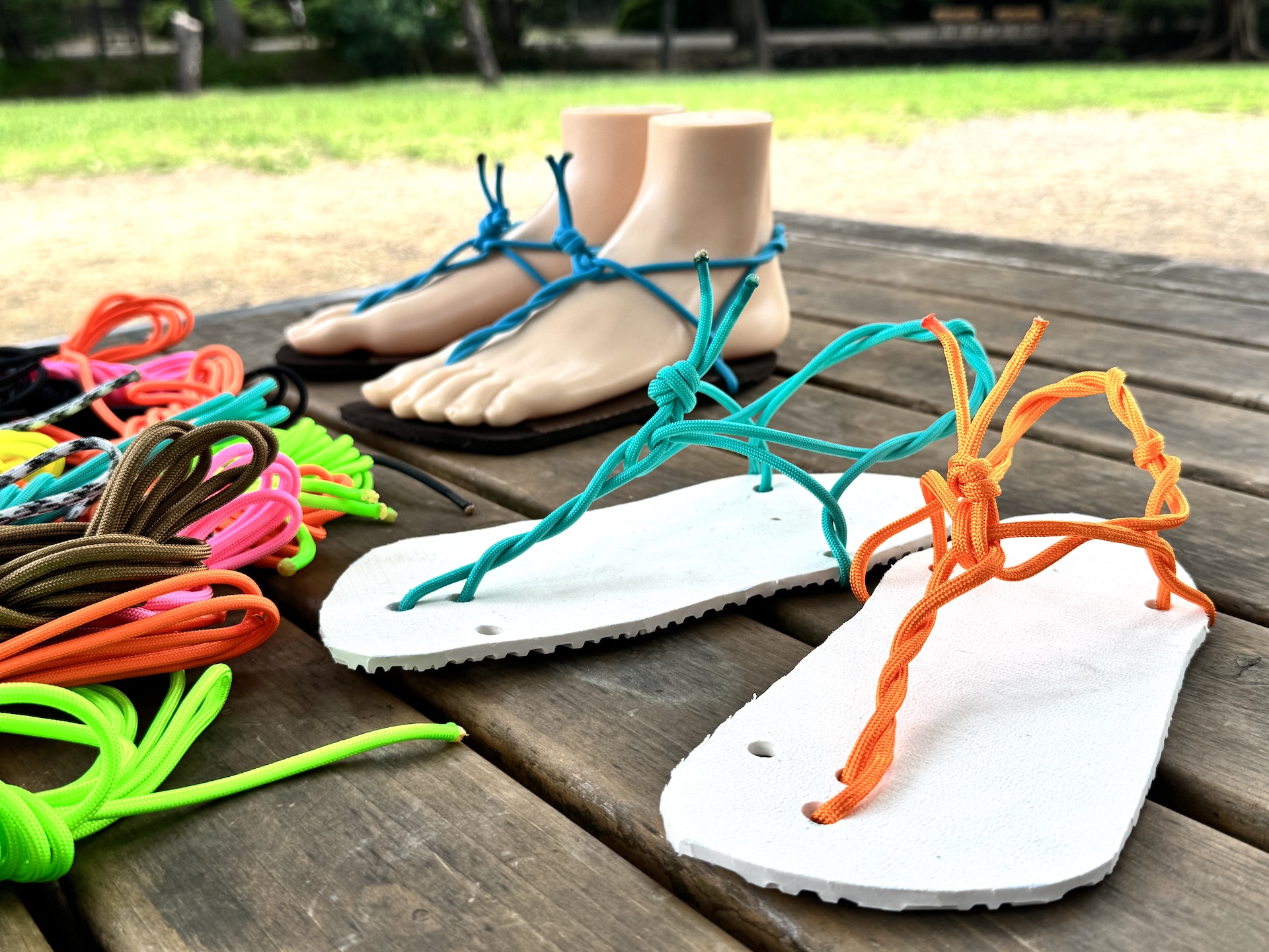 - 【Cコース:自分のワラーチのソールや紐を使って、ちきゅうサンダル作成】