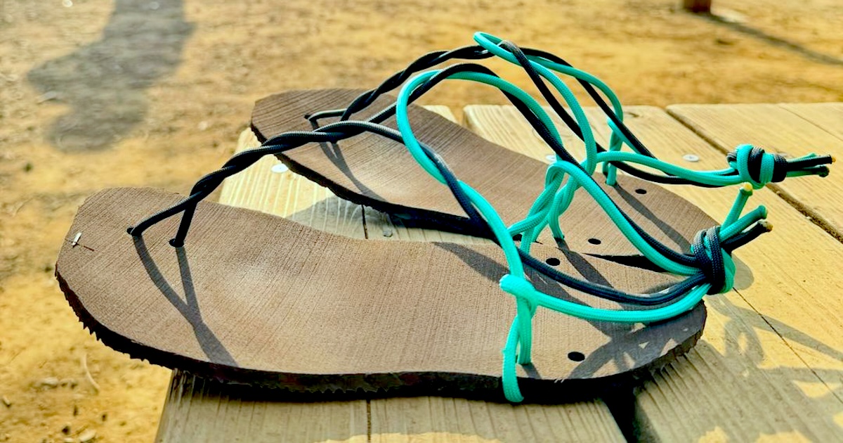- ソール(サンダル底)に、自分の好きな色や硬さの紐(主にパラコード)を結んで、ワラーチを作ります。