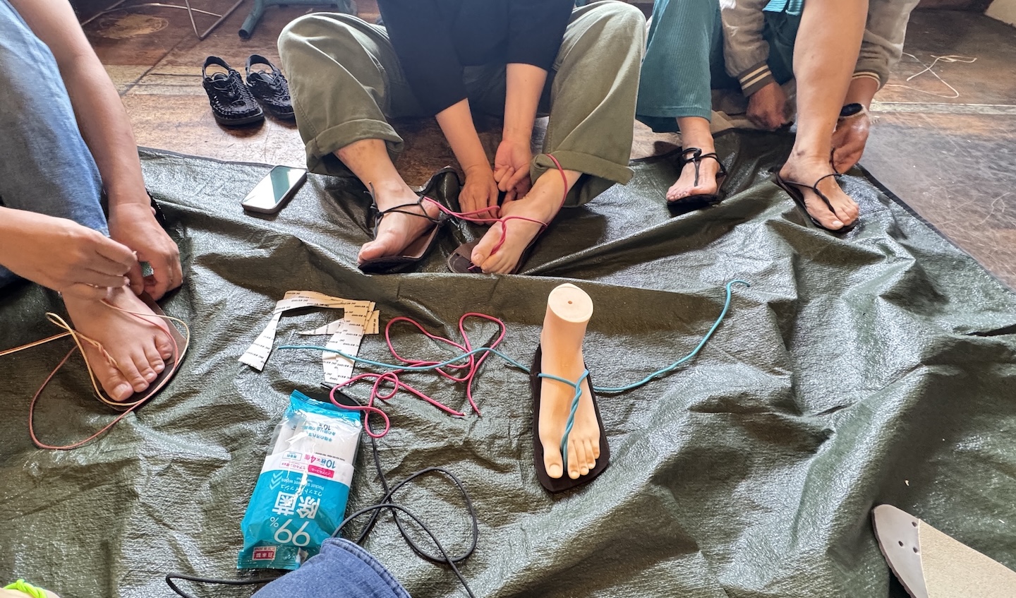 ワラーチを新規で作る方と一緒に、自分自身で自分の足に合わせて作り直す作業ができます(紐の結び方は、当方の「禅サンダル」ワラーチシリーズのものになります)。